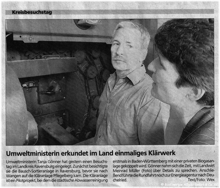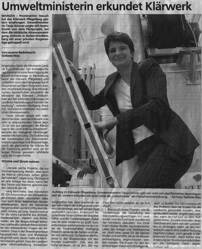Umweltministerin erkundet Klärwerk Bericht in der "Schwäbischen Zeitung" vom 28.07.2007