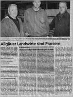 Allgäuer Landwirte sind Pioniere Bericht der "Schwäbischen Zeitung"